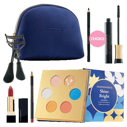 Bevat: NIEUWE Shine Bright Eye Palette 9g 6x Eyeshadows, keuze uit 1x Radiant Lipstick, keuze uit 1x Defi ne